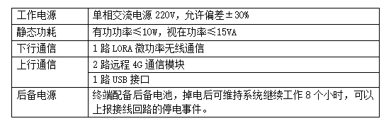 ◇后備電源:終端配備后備電容,可上報接線回路的停電事件。也可選配后備電池。